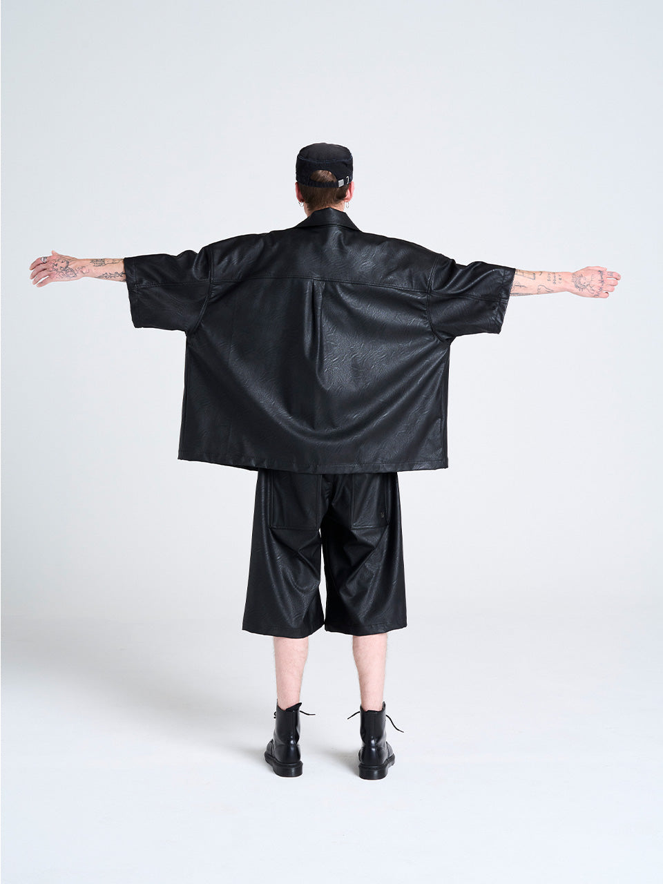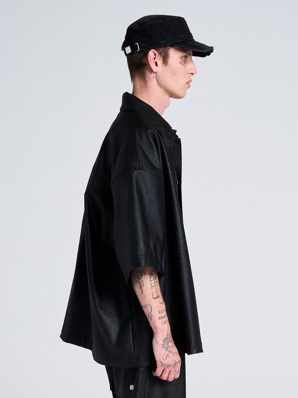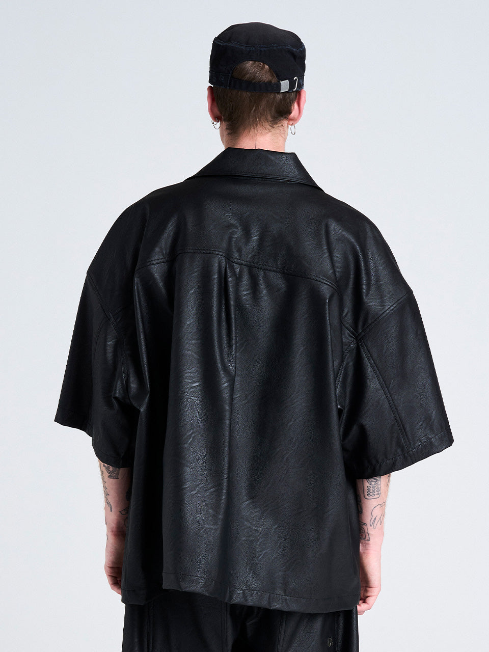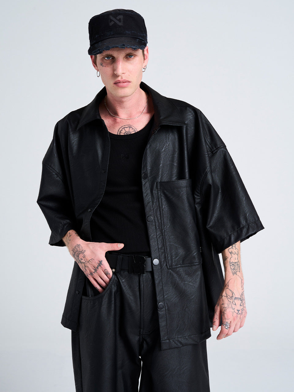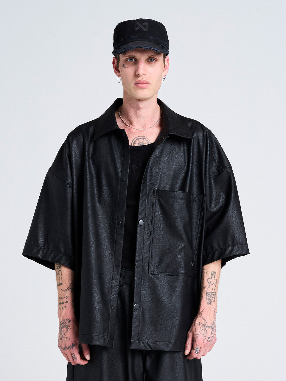 BLACK FAUX LEATHER SHIRT